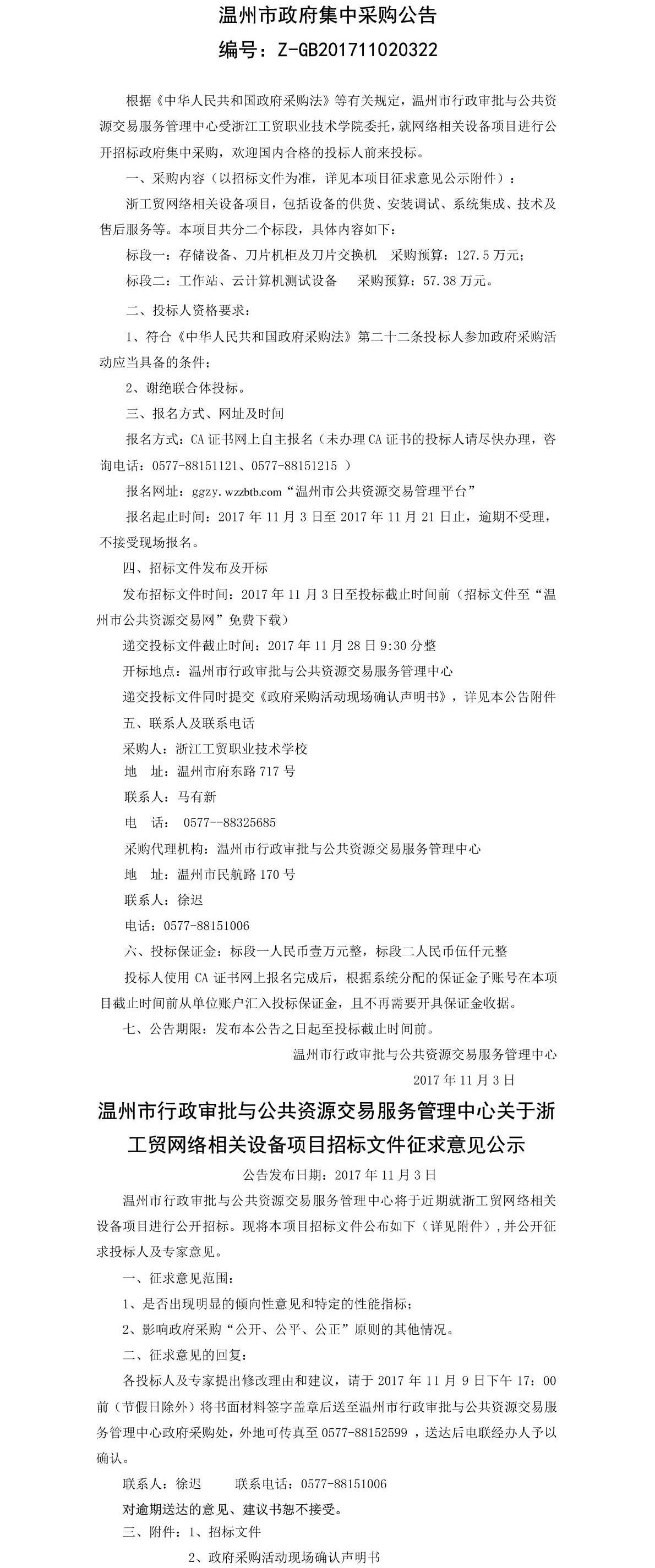 浙江工贸职业技术学院相关网络设备的公款招标公告